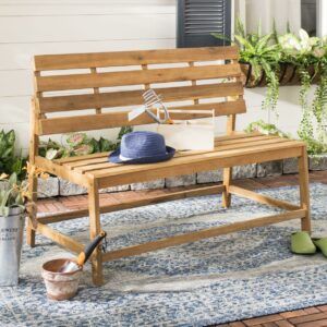 Safavieh Ruben Outdoor Convertible Bench and Table, Teak Finish – Natural