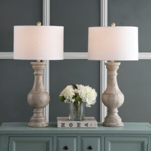 SAFAVIEH Savion Antique 31.25 in. H Table Lamp, White Wash, Set of 2