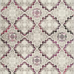SAFAVIEH Skyler Willoughby Floral Area Rug, Grey/Pink, 5’1″ x 7’6″