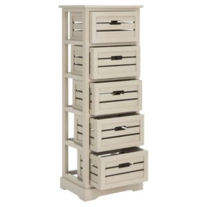 SAFAVIEH Sarina Solid Rustic 5 Drawer Cabinet, Distressed Cream (16.5 in. W x 12.6 in. D x 46.5 in. H)