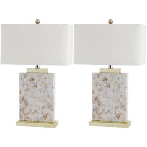 SAFAVIEH Tory 24 in. Gold Shell Table Lamp with White Polyester Shade, Set of 2