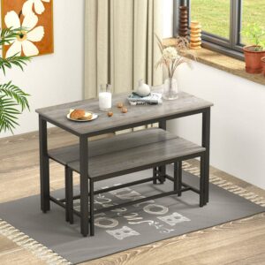 Aukfa 43.3″ Dining Table Set for 4, Rectangular Kitchen Table W/ 2 Benches for Small Space,Gray
