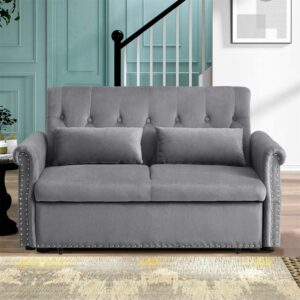 Aukfa 55″ Convertible Sleeper Sofa Bed with Pull Out Couch, Velvet Tufted Button Backrest Loveseat – Gray