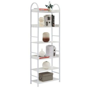 Aukfa 6 Tier Bookshelf, Metal Bookcase Vintage Storage Rack for Living Room, Bedroom – White