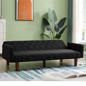 Aukfa 75″ Tufted Futon Convertible Sofa Bed, Upholstered Arm Couch for Home Office, Black
