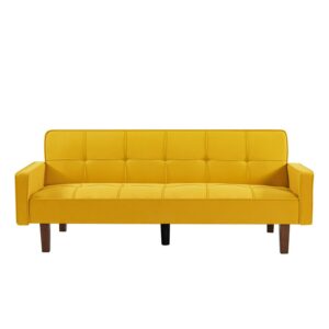 Aukfa 75″ Upholstered Futon Convertible Sofa Bed, Solid Wood Legs, Tufted Back, Yellow