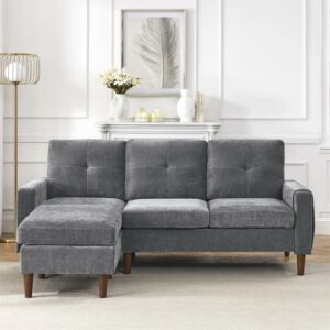 Aukfa 80″ Sectional Sofa for Living Room, 3 Seater Couch with Reversible Ottoman, Chenille, Dark Gray