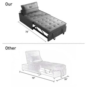 Aukfa 78″ Chaise Futon Oversized Pull Out Sleeper Chair Bed for Home Office, Leather, Gray