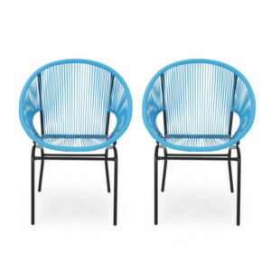 Samayah Outdoor Faux Rattan Club Chairs – Set of 2 – Blue and Black