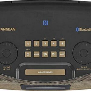 Sangean RCR-40 AM/FM Bluetooth Tabletop Wooden Clock Radio with Alarm and Sleep Timers