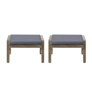 Sasha Acacia Wood Outdoor Ottomans with Cushion, Set of 2, Gray and Dark Gray