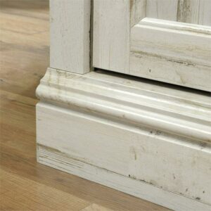 Sauder Barrister Lane Sliding Door Entertainment Credenza TV Stand for TVs up to 60″, White Plank Finish
