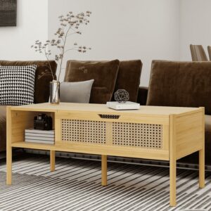 Aukfa Modern Extendable Coffee Table – Rectangle Cocktail Table with 4 Storage Drawers – White