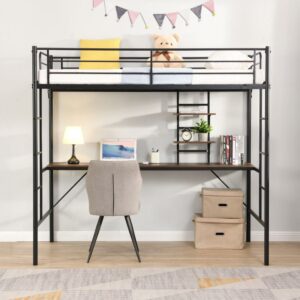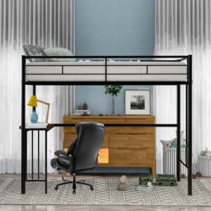 Aukfa Metal Twin Loft Bed with Desk for Kids Teens Dorm Bedroom, Black
