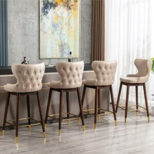 Aukfa Modern Wood Counter Height 29.9″ Bar Stools with Leather Back – Set of 2 – Beige