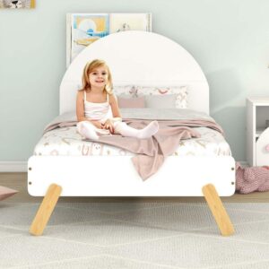 Aukfa Platform Bed for Kids, Twin Bed Frame with Semi-circular Headboard, Wooden – White