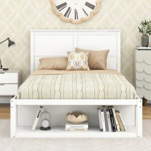 Aukfa Platform Bed with Drawers and Shelf, Full Size Storage Bed, Wooden – White