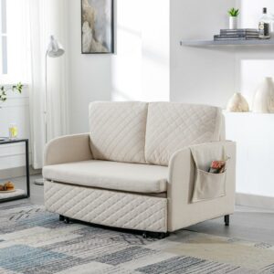 Aukfa Pull Out Sofa Bed, Convertible Sleeper Sofa Futon Sofa Bed for Home Office, Linen, Beige