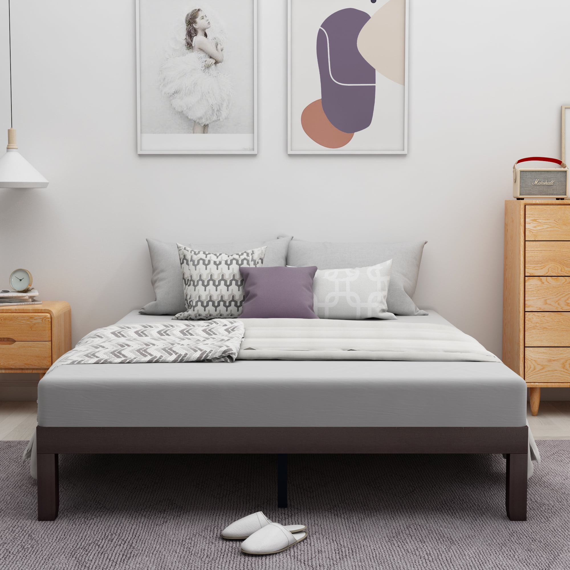 Aukfa Platform Bed, Twin Bed Frame with Headboard, Wooden – Gray