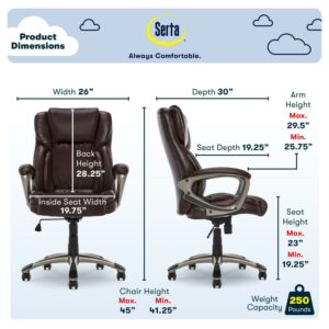Serta Garret Executive Office Chair, Ergonomic Lumbar Support, Semi-Plush Cushion, Body Pillows, Brown
