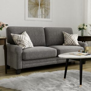 Serta Copenhagen 73″ Rolled Arm Sofa with Removable Covers Dark Gray
