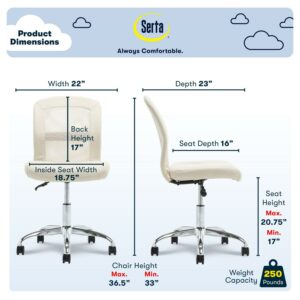 Serta Essentials Armless Task Chair, Faux Leather and Mesh, Cream