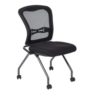 Set of 2 Deluxe Armless Folding Chair with ProGrid Black in Coal Black Fabric