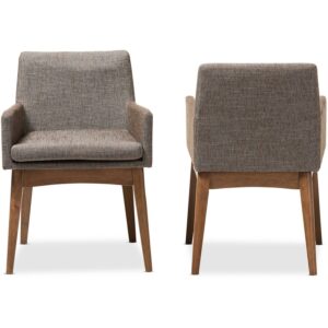 Set of 2 Baxton Studio Nexus Mid-Century Modern Walnut Wood Finishing and Gravel Fabric Upholstered Arm Chairs