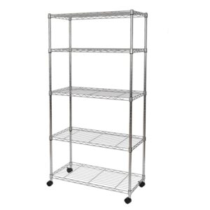 Seville Classics 5-Tier Steel Wire Shelving with Wheels, 30″ W x 14″ D x 60″ H, Chrome Plated