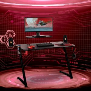Seville Classics airLIFT Computer Writing Study Desk, Black and Red, 47″ Carbon Fiber Z Frame