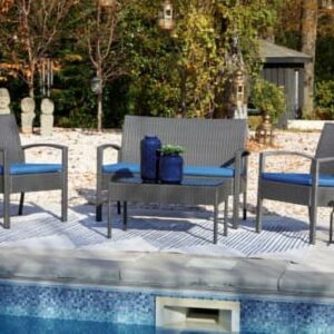 Signature Design by Ashley Casual Alina Outdoor Love/Chairs/Table Set (Set of 4) Gray/Blue