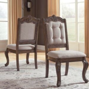 Signature Design by Ashley Charmond Antique Upholstered Dining Chair, Set of 2, Brown