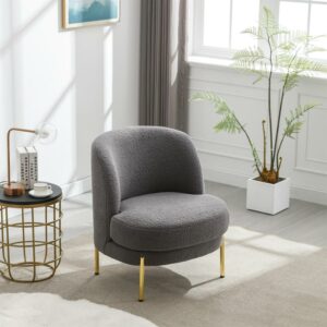 Aukfa Upholstered Accent Chair for Living Room, Curved Backrest Reading Chair Single Sofa, Gray