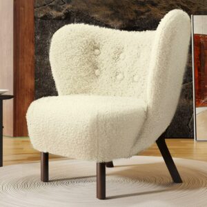 Aukfa Wingback Accent Chair – Modern Tufted Side Chair for Living Room – White