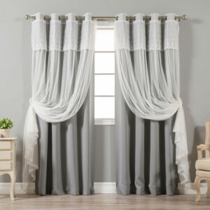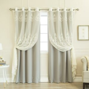 Aurora Home Mix & Match Agatha Sheer and Blackout 4 Piece Curtain Set Dove Grey 96 Inches