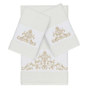 Authentic Hotel and Spa Turkish Cotton Aaron 3PC Embellished Towel Set White