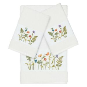 Authentic Hotel and Spa Cream Turkish Cotton Wildflowers Embroidered 3 piece Towel Set