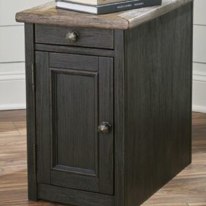 Signature Design by Ashley Tyler Creek Rustic Farmhouse Chairside End Table with USB Charging Ports & Cup Holders – Grayish Brown/Black
