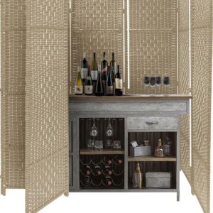 Sorbus Extra Wide Diamond Weave Fiber Room Divider, 6 Panel, Beige