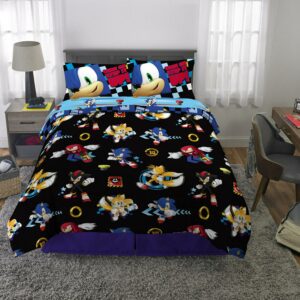 Sonic the Hedgehog Kids Full Bed in a Bag, Gaming Bedding, Comforter and Sheets, Black, Sega
