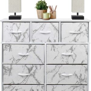 Sorbus Dresser with 9 Drawers- White Frame, White Marble Drawers