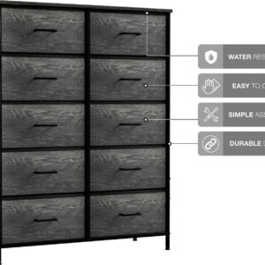 Sorbus Dresser with 9 Drawers- Black Frame, Black Marble Drawers