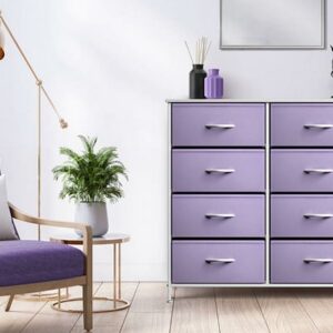 Sorbus Chest of 8 Drawers Dresser for Nursery & Children’s Rooms, Wood Top, Fabric Drawers – Purple