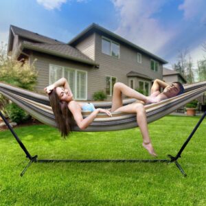 Sorbus Two Person Adjustable Hammock Bed with Steel Stand, Desert-Brown Blue