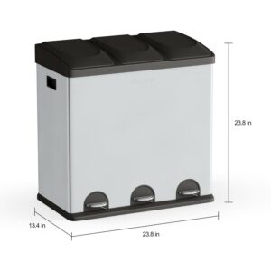 Step N’ Sort Kitchen Trash Can, 16 Gallon Stainless Steel 3 Compartment Recycle Step Lid Garbage Bin, Silver