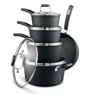 Starfrit The Rock Essential 10 Piece Non-Stick Cookware Set, Durable Forged Aluminum, Easy To Clean, Black