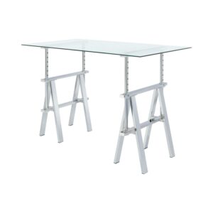 Statham Glass Top Adjustable Writing Desk Clear and Chrome