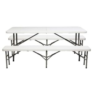 Stansport 44″ Heavy-Duty Picnic Table with Hideaway Benches, Black