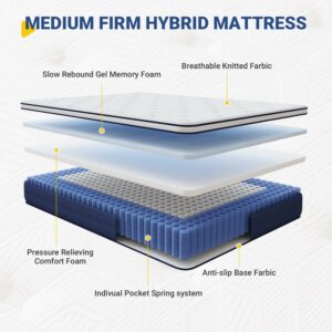 Avenco 12″ Gel Memory Foam and Pocket Spring Hybrid Mattress, Twin Mattress, Adult