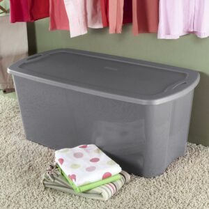 Sterilite 50 Gallon Tote, Plastic Storage Bin with Snap-on Lid, Gray, 4 Count